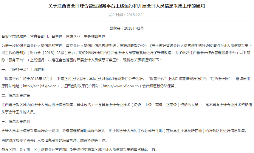 分析:江西省信息采集工作通知中指出,具有會(huì)計(jì)專業(yè)技術(shù)資格的人員,比如初級(jí)會(huì)計(jì),和不具備專業(yè)技術(shù)資格但從事會(huì)計(jì)工作的人員,需要參加信息采集。