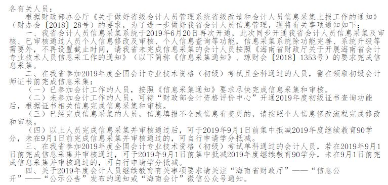 海南《關(guān)于開(kāi)通海南省會(huì)計(jì)人員信息采集系統(tǒng)個(gè)人信息采集、修改等功能的通知》: