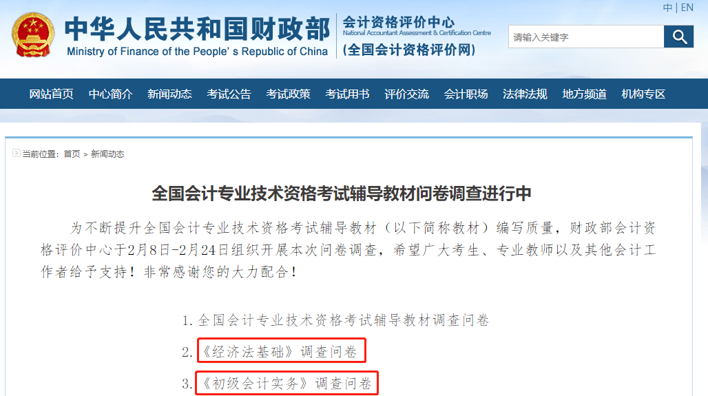 關(guān)注財會考試動態(tài)的小伙伴們最近應(yīng)該也發(fā)現(xiàn)了財政部正在面向相關(guān)財會行業(yè)人員征集會計職稱考試教材修改意見,其中包括初級會計考試的兩個科目:《初級會計實務(wù)》和《經(jīng)濟法基礎(chǔ)》,這對于未來學習方向、教材內(nèi)容和考試難度都會有影響,快跟著東奧小編的步伐來看下調(diào)查問卷中有哪些問題,又會給我們反映出什么樣的信息呢!