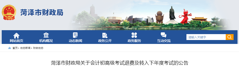 山東菏澤市關于初級會計考試退費及轉入下年度考試的公告