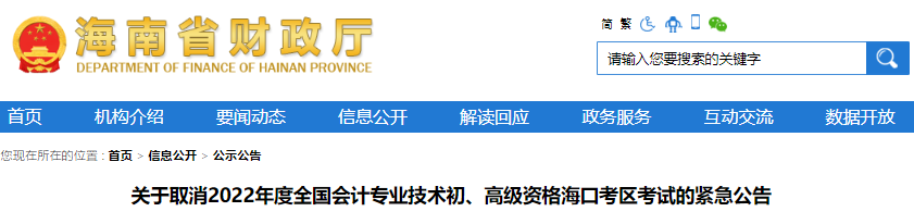海南關(guān)于取消2022年初級會計??诳紖^(qū)考試的緊急公告
