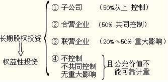 長期股權(quán)投資是指企業(yè)持有的對其子公司、合營企業(yè)及聯(lián)營企業(yè)的權(quán)益性投資以及企業(yè)持有的對被投資單位不具有控制、共同控制或重大影響,并且在活躍市場中沒有報價、公允價值不能可靠計量的權(quán)益性投資。