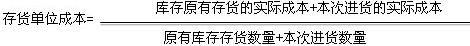 存貨單位成本=[月初庫存存貨+∑(本月各批進貨的實際單位成本×本月各批進貨的數(shù)量)]÷(月初庫存存貨的數(shù)量+本月各批進貨數(shù)量之和)