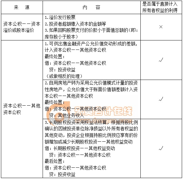 B.直接計入所有者權益的利得