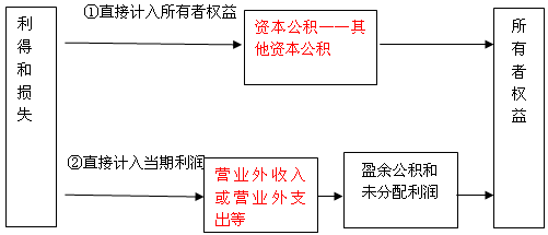利得分為計(jì)入到利潤(rùn)表的利得(營(yíng)業(yè)外收入等)和直接計(jì)入到所有者權(quán)益(資本公積)的利得。