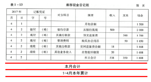 (2)庫存現(xiàn)金、銀行存款日記賬和需要按月結(jié)計發(fā)生額的收入、費用等明細賬,每月結(jié)賬時,要在最后一筆經(jīng)濟業(yè)務(wù)記錄下面通欄劃單紅線,結(jié)出本月發(fā)生額和余額,在摘要欄內(nèi)注明“本月合計”字樣,并在下面通欄劃單紅線。