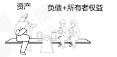 會(huì)計(jì)等式就類似“蹺蹺板”,左邊坐著一個(gè)大人,手拿著一個(gè)蘋果(總計(jì)100斤),右邊坐著兩個(gè)孩子,各拿一個(gè)蘋果(每個(gè)孩子加蘋果均50斤)。