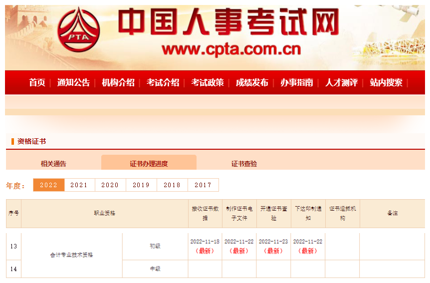 根據(jù)中國人事考試網(wǎng)最新證書辦理進度顯示,2022年初級證書已下達印制通知,正在印制中。這樣看來,距離大家領(lǐng)證又近一步了!