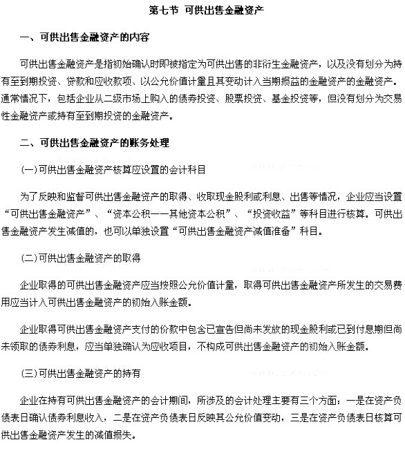 一、可供出售金融資產(chǎn)的內(nèi)容