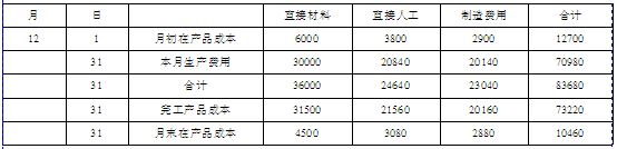 完工產(chǎn)品的直接材料成本=31500×1=31500(元)