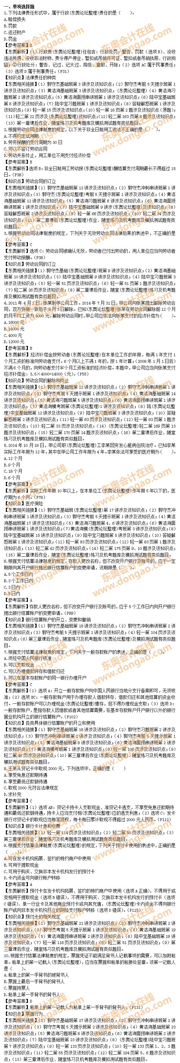 2015年初級會計職稱考試《經(jīng)濟法基礎(chǔ)》試題及答案(5.17補充版)