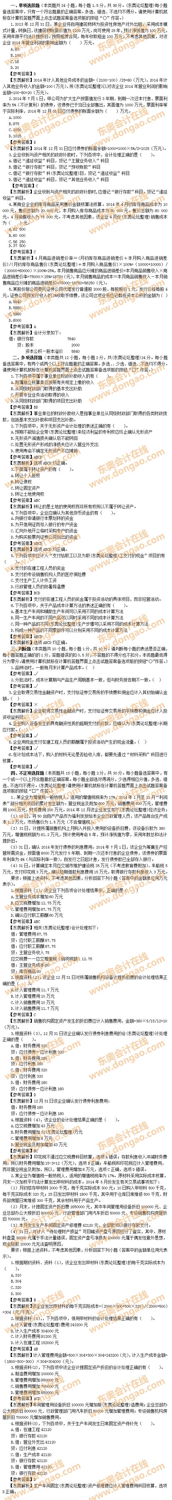 【東奧小編】2015年初級(jí)會(huì)計(jì)職稱考試陸續(xù)開考,大家最關(guān)心的是今年2015初級(jí)會(huì)計(jì)師真題及考試答案,非常多的網(wǎng)友在東奧考后討論區(qū)和2015初級(jí)會(huì)計(jì)職稱考試真題回憶區(qū)進(jìn)行考后交流,氣氛非;鸨(qǐng)大家進(jìn)入論壇進(jìn)行交流>>2015年初級(jí)會(huì)計(jì)職稱考試真題及解析(網(wǎng)友回憶版),本篇為2015年《初級(jí)會(huì)計(jì)實(shí)務(wù)》真題及解析(5.18補(bǔ)充版)。