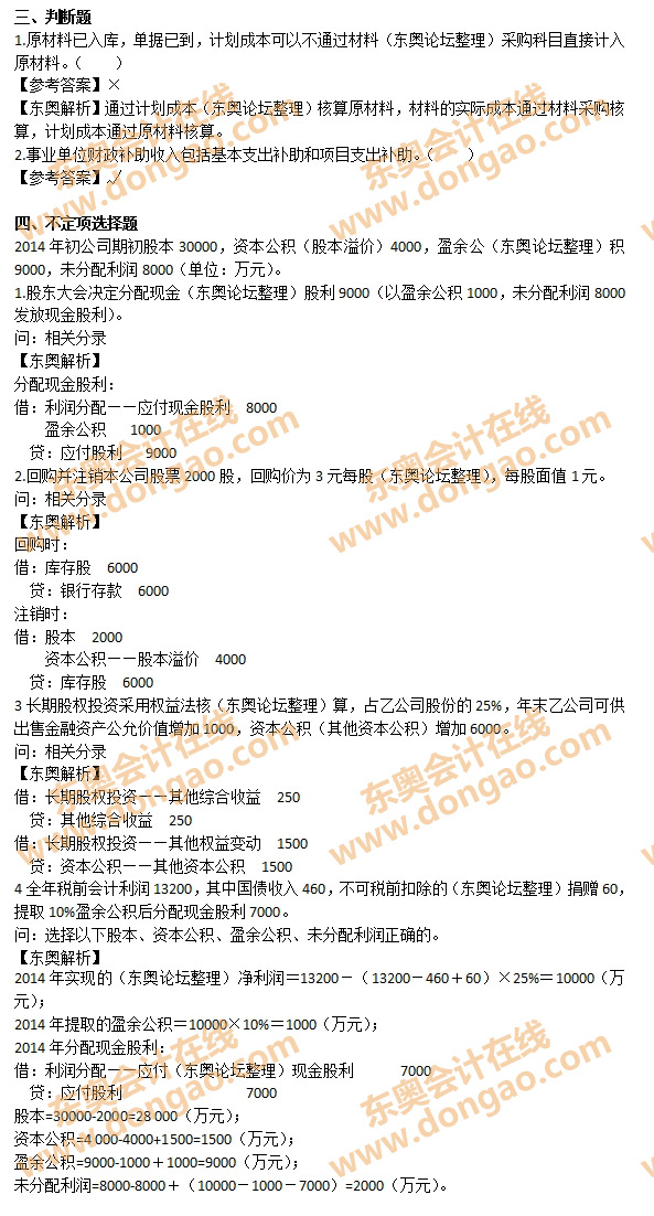 【東奧小編】2015年初級會計職稱考試陸續(xù)開考,大家最關(guān)心的是今年2015初級會計師真題及考試答案,非常多的網(wǎng)友在東奧考后討論區(qū)和2015初級會計職稱考試真題回憶區(qū)進(jìn)行考后交流,氣氛非;鸨埓蠹疫M(jìn)入論壇進(jìn)行交流>>2015年初級會計職稱考試真題及解析(網(wǎng)友回憶版),本篇為2015年《初級會計實務(wù)》考試真題及答案(5.20)。