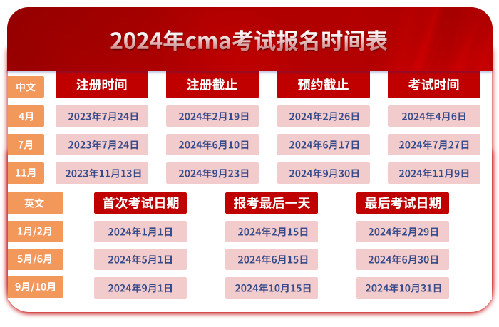 · cma報名時間安排表 ·