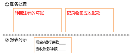 轉(zhuǎn)回之前注銷的壞賬準(zhǔn)備,重新記錄應(yīng)收賬款和現(xiàn)金的變化