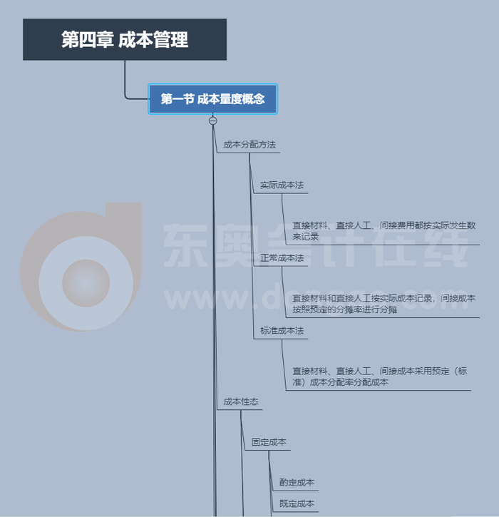 以上就是P1科目第四章的相關(guān)內(nèi)容,正確使用思維導(dǎo)圖,學(xué)會將知識點串聯(lián),能夠有效的幫助我們提升備考效率!如果還想獲取更多CMA考試等相關(guān)內(nèi)容,那就請多多關(guān)注東奧會計在線頻道吧。