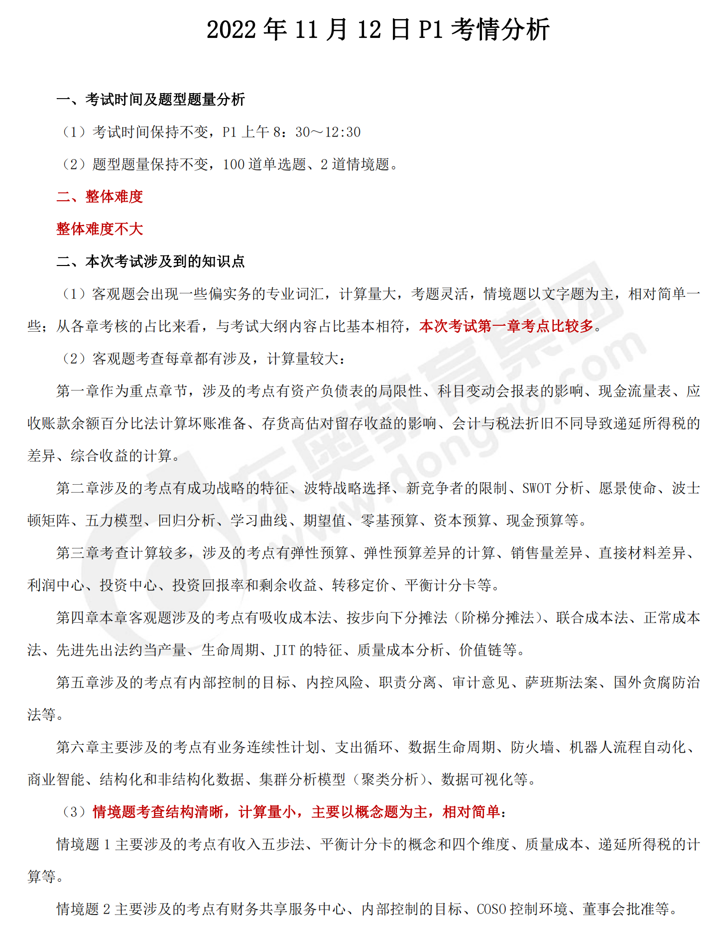 · 2022年11月12日CMA-P1科目考情分析 ·
