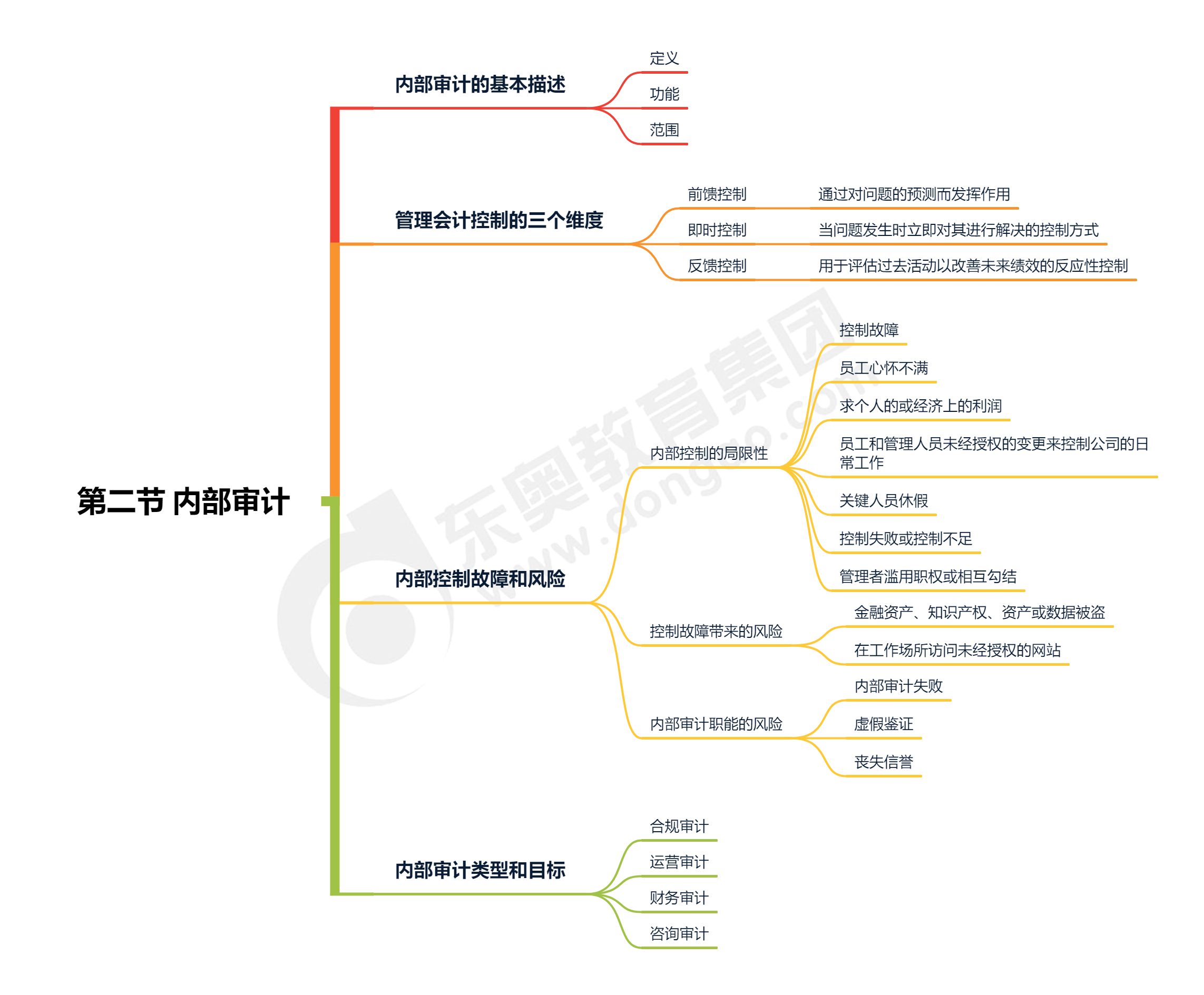 做的事情,你能夠有遺憾,但不能夠有后悔!當(dāng)你覺得備考cma很苦的時(shí)候,請(qǐng)看看你周圍,看看這個(gè)世界別的人,必須會(huì)有人比你更苦,因此千萬別太難過。以下是東奧會(huì)計(jì)在線為大家準(zhǔn)備的2023年cma考試P1科目第五章第二節(jié)內(nèi)部審計(jì)知識(shí)點(diǎn)思維導(dǎo)圖,一起來學(xué)習(xí)吧!