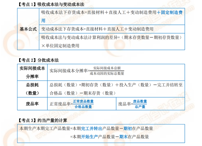 本章知識(shí)點(diǎn)繁雜,但掌握好方法一樣能將知識(shí)點(diǎn)由點(diǎn)及面連接起來(lái),使學(xué)習(xí)更為輕松。就本章節(jié)介紹的成本類型和成本的劃分等相關(guān)的成本概念一定要理解記憶清楚,本章的計(jì)算較多,約當(dāng)產(chǎn)量、聯(lián)產(chǎn)品分?jǐn)?、服?wù)部門成本分?jǐn)傄约伴g接成本分?jǐn)偠际潜容^有難度的知識(shí)點(diǎn),一定要將所有課程和習(xí)題都做一遍才能熟練掌握。