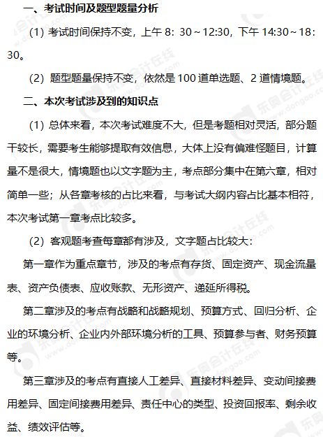 隨著4月6日cma中文考試的P1科目圓滿落幕,眾多考生對此次考試的各項(xiàng)細(xì)節(jié)都抱有極大的關(guān)注。為了讓大家更為清晰地掌握此次考試的情況,東奧教研團(tuán)隊(duì)特別出擊,對考試內(nèi)容進(jìn)行了全面而深入的考情分析,大家一起來看下吧!