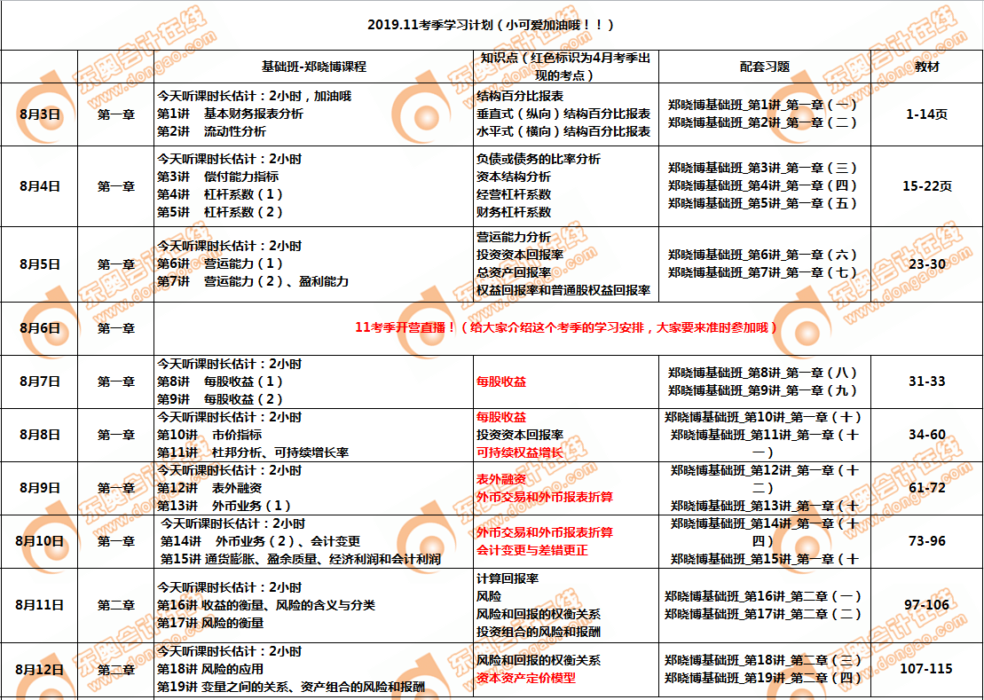 2019年11月份CMA考試《財(cái)務(wù)決策》8月份學(xué)習(xí)日歷