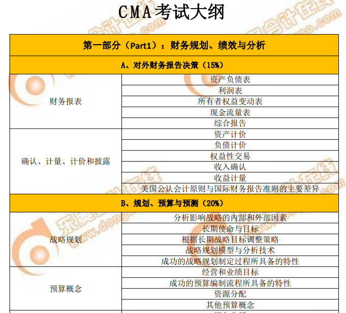 以上就是東奧會計在線整理的關于cma全科目的考試大綱的內容,希望可以幫助考生了解知識框架,順利備考! 如果還想獲取更多cma考試大綱等相關內容,那就請多多關注東奧會計在線頻道吧。