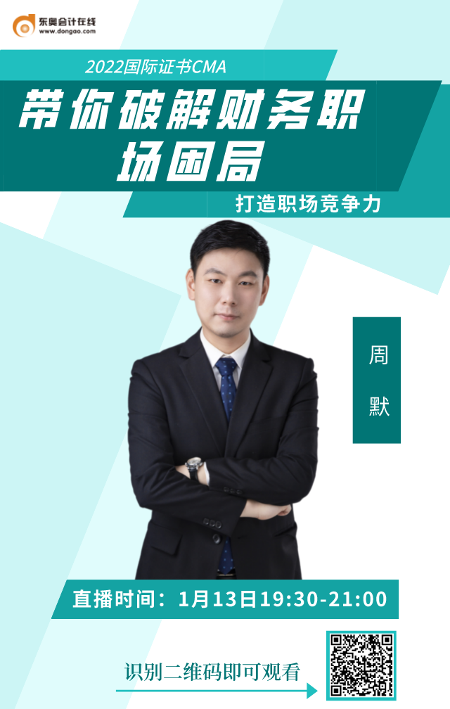 2022年1月13日,19:30-21:00,一個(gè)半小時(shí)的直播干貨,值得你的期待哦,想要觀看直播的小伙伴們千萬不要記錯(cuò)時(shí)間,可以提前訂好鬧鐘。想獲取更多有關(guān)CMA考試的相關(guān)內(nèi)容,請(qǐng)持續(xù)關(guān)注東奧會(huì)計(jì)在線CMA頻道呦。