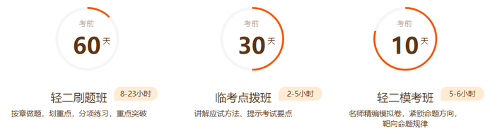 享三個進階過程、五個班次組合,總共幫學員規(guī)劃了考前60天的學習計劃,以模擬考場的形式,熟悉題型,通過不同題型對知識的不同考察形式,掌握答題技巧。現(xiàn)在查看立減500元>>