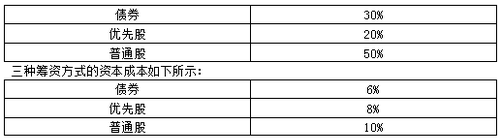 加權(quán)平均資本成本=3.6%×30%+8%×20%+10%×50%=7.68%
