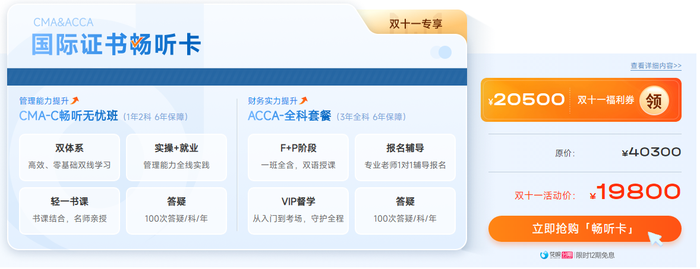 雙11優(yōu)惠返場!購23年CMA暢聽C班直降¥5000!再贏¥5000獎學(xué)金!