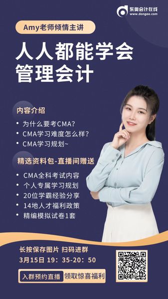 以上就是關(guān)于直播的相關(guān)信息,想要在今年報(bào)考cma考試的小伙伴,直播間不見不散!想獲取更多有關(guān)cma考試時(shí)間等相關(guān)內(nèi)容,請(qǐng)持續(xù)關(guān)注東奧會(huì)計(jì)在線CMA頻道。