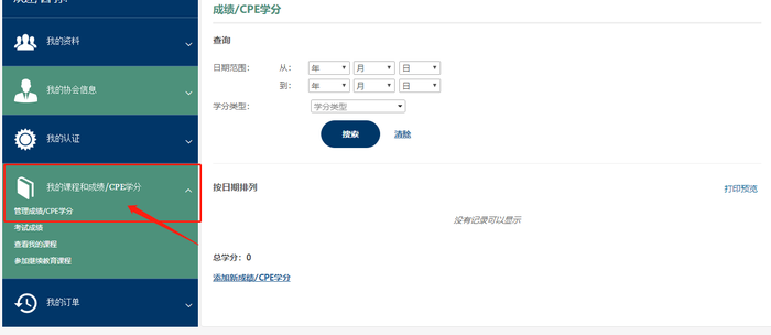 2.點(diǎn)擊“我的課程和成績(jī)/CPE學(xué)分”