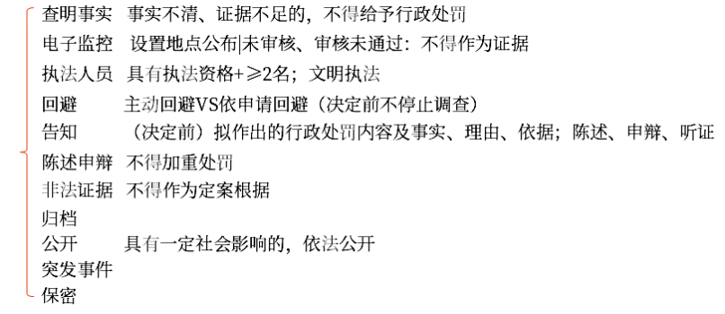| 執(zhí)法人員 | (1)行政處罰應當由具有行政執(zhí)法資格的執(zhí)法人員實施 (2)執(zhí)法人員不得少于2人,法律另有規(guī)定的除外 (3)執(zhí)法人員應當文明執(zhí)法,尊重和保護當事人合法權益 | |