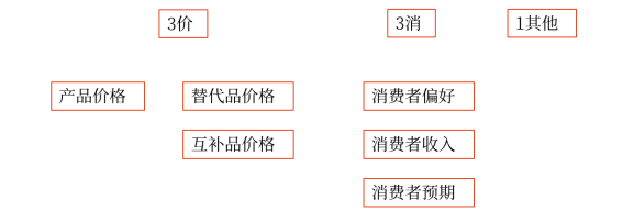 (1)影響需求的基本因素:“3價(jià),3消,1其他”。