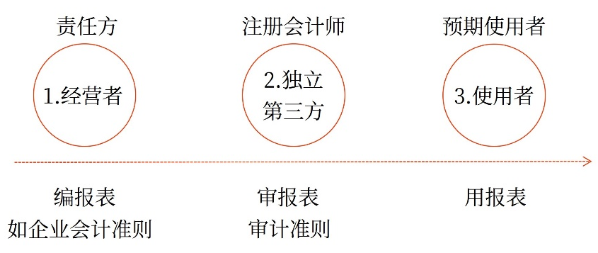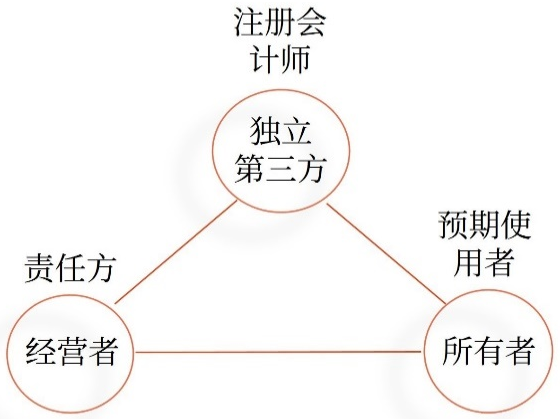 三方之間的關(guān)系是注冊(cè)會(huì)計(jì)師對(duì)由被審計(jì)單位管理層負(fù)責(zé)的財(cái)務(wù)報(bào)表發(fā)表審計(jì)意見(jiàn),以增強(qiáng)除管理層之外的預(yù)期使用者對(duì)財(cái)務(wù)報(bào)表的信賴程度。
