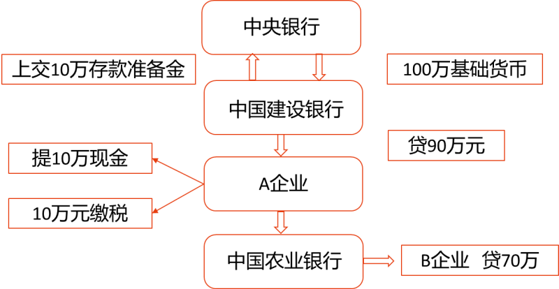 商業(yè)銀行的擴(kuò)張信用并創(chuàng)造派生存款機(jī)制 | 中央銀行每放出一筆信用,通過銀行體系的輾轉(zhuǎn)存貸,就可以派生出大量新增存款 商業(yè)銀行不能無限制地創(chuàng)造派生存款。一般來說,銀行體系擴(kuò)張信用并創(chuàng)造派生存款的能力要受到三類因素的制約: (1)受到繳存中央銀行存款準(zhǔn)備金的限制 (2)受到提取現(xiàn)金數(shù)量的限制 (3)受到企事業(yè)單位及社會(huì)公眾繳付稅款等的限制 |