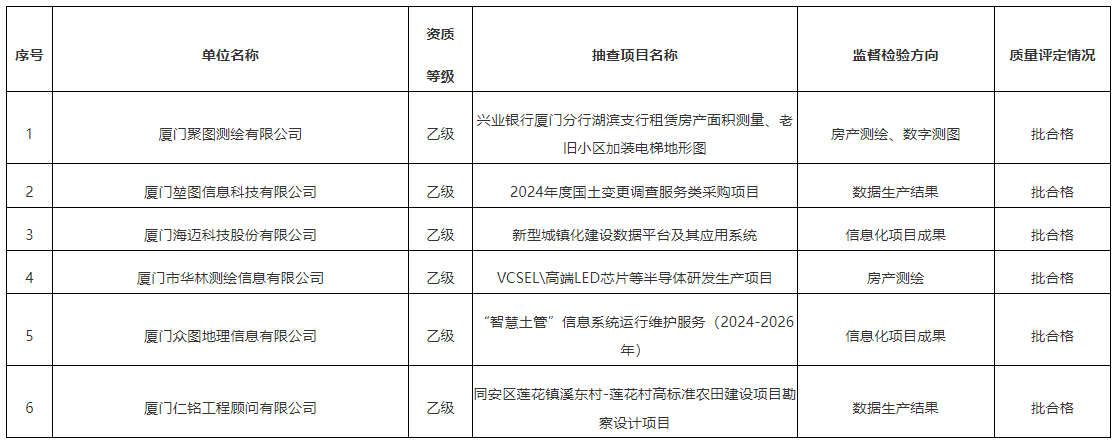 2025年下半年測繪成果質(zhì)量監(jiān)督抽查情況匯總表