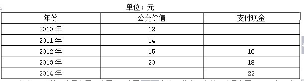 2010年有10名管理人員離開(kāi)甲公司,甲公司估計(jì)三年中還將有8名管理人員離開(kāi);2011年又有6名管理人員離開(kāi)公司,公司估計(jì)還將有6名管理人員離開(kāi);2012年又有4名管理人員離開(kāi),有40人行使股票增值權(quán)取得了現(xiàn)金,2013年有30人行使股票增值權(quán)取得了現(xiàn)金,2014年有10人行使股票增值權(quán)取得了現(xiàn)金。