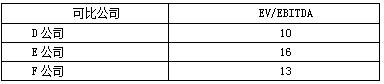 3. 可比企業(yè)平均EV/EBITDA=(10+16+13)/3=13