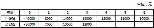 B公司現(xiàn)決定購(gòu)置一臺(tái)新設(shè)備,現(xiàn)在市面上有甲、乙兩種品牌可供選擇,相比之下,乙設(shè)備比較便宜,但壽命較短。兩種設(shè)備的現(xiàn)金凈流量預(yù)測(cè)如下: