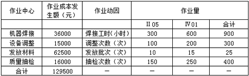 假設(shè)經(jīng)作業(yè)分析,該企業(yè)根據(jù)各項(xiàng)作業(yè)的成本動(dòng)因性質(zhì)劃分了機(jī)器焊接、設(shè)備調(diào)整、發(fā)放材料和質(zhì)量抽檢四項(xiàng)作業(yè);各作業(yè)動(dòng)因及作業(yè)成本發(fā)生額等有關(guān)資料如下表: