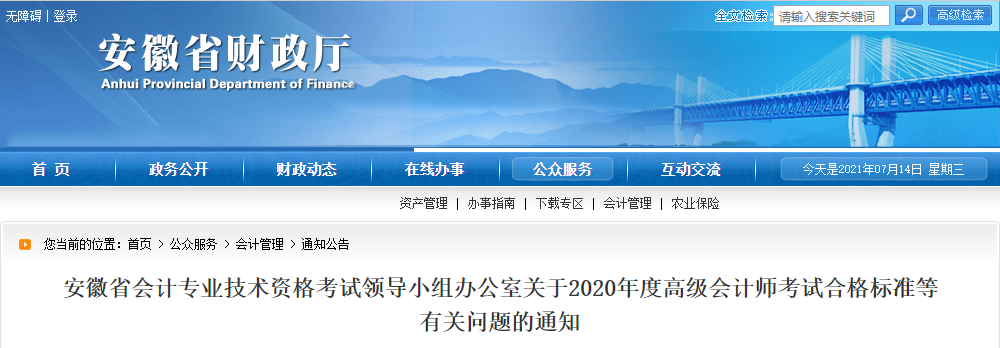 參考安徽省2020年高級會計(jì)師考試成績合格標(biāo)準(zhǔn)