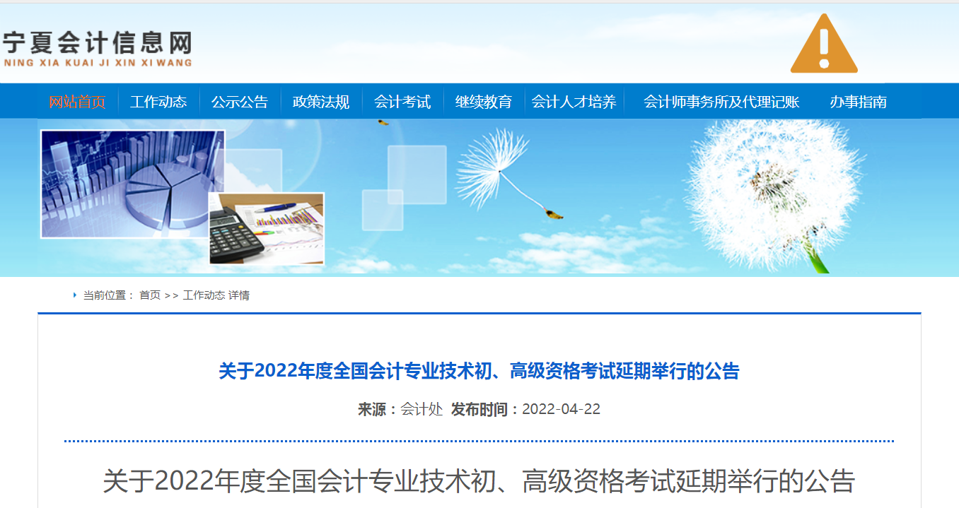 關(guān)于2022年度全國會計專業(yè)技術(shù)初、高級資格考試延期舉行的公告