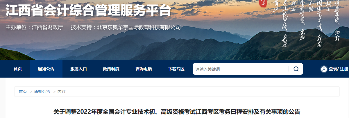 關(guān)于調(diào)整2022年度全國會計專業(yè)技術(shù)初、高級資格考試江西考區(qū)考務(wù)日程安排及有關(guān)事項的公告