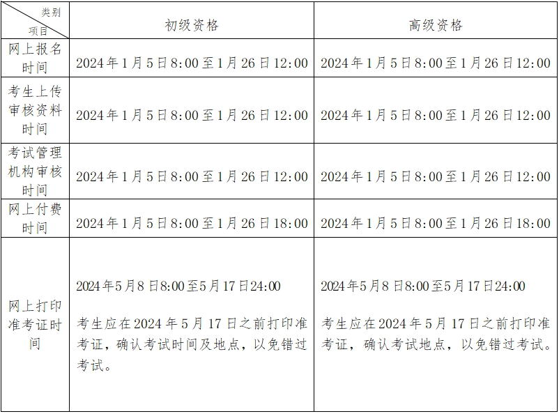 1. 初級(jí)資格考試于2024年5月18日至22日進(jìn)行。具體安排如下: