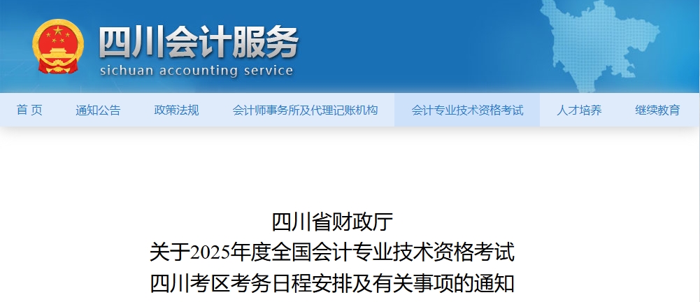 四川省財(cái)政廳關(guān)于2025年度全國會(huì)計(jì)專業(yè)技術(shù)資格考試四川考區(qū)考務(wù)日程安排及有關(guān)事項(xiàng)的通知