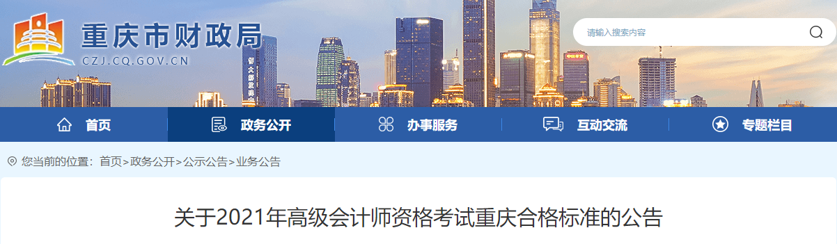 根據(jù)財政部會計資格評價中心《關(guān)于下發(fā)2021年度全國會計技術(shù)高級資格考試成績等有關(guān)事項的通知》(會評【2021】12號)精神,2021年度會計專業(yè)技術(shù)高級資格考試成績已在“全國會計資格評價網(wǎng)”上公布??忌蛇M“重慶市財政局”官網(wǎng)“會計之家”查詢成績。根據(jù)我市會計專業(yè)人員的考試情況,2021年我市合格標準按60分執(zhí)行。
