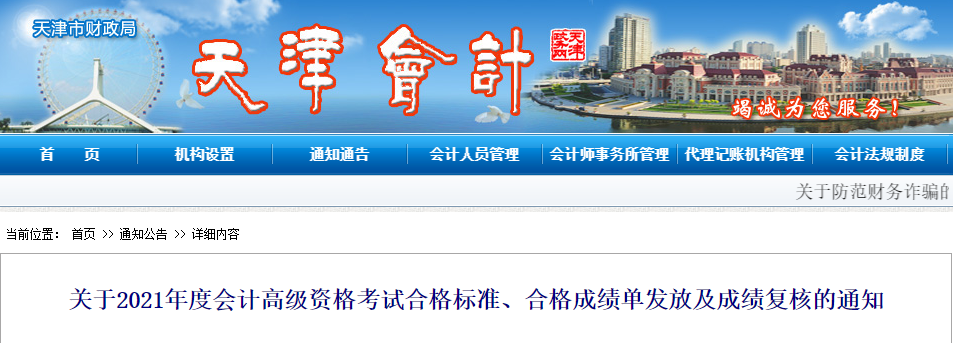 天津2021年度會(huì)計(jì)專業(yè)技術(shù)高級(jí)資格考試合格標(biāo)準(zhǔn)已公布
