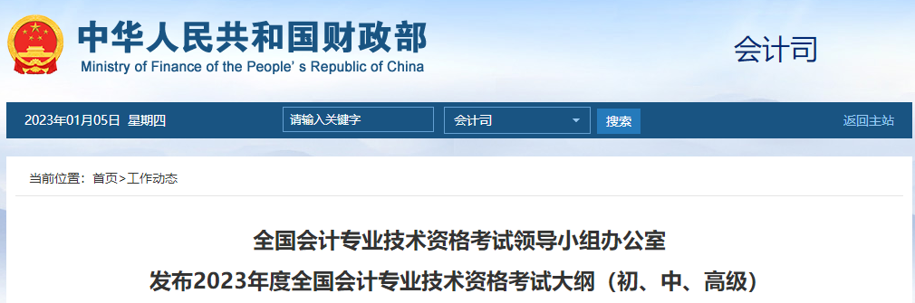 全國會計專業(yè)技術(shù)資格考試領(lǐng)導(dǎo)小組辦公室發(fā)布2023年度全國會計專業(yè)技術(shù)資格考試大綱(初、中、高級)
