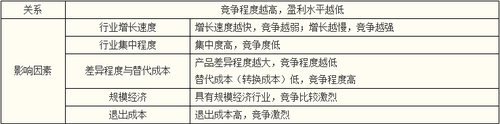 一個(gè)行業(yè)競爭程度和盈利能力水平主要影響因素有以下三個(gè)方面: